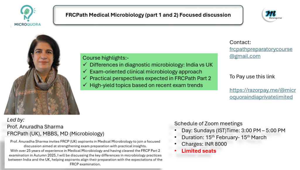 We will support you with your FRCPath microbiology preparation by providing FRCPath preparatory courses and FRCPath Microbiology Mock examination. We will also support your educational endeavour by organising courses in collaboration with your organisation with expert faculty from both overseas and India.